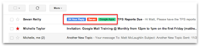 When you receive a message from someone, this message could have multiple topics involved in the body of the text.  GMail Labels allow you the ability to place more than one label on a particular message to allow you the luxury of storing it in more than one label.  The message you receive may have to deal with Google Apps, a specific client/person, and you may have to respond to this email within 24 hours.  Notice the email message in the image below … it has the above mentioned labels applied to the single message.