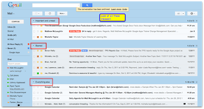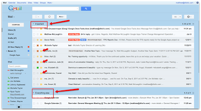 With the ‘Important First’ view messages are separated in to two sections, Important and Everything Else. Gmail will begin to recognize which messages are considered important by following a few guidelines. These guidelines consist of who you email, which messages you open, what keywords spark your interest, which messages you reply to, and your recent use of stars/archive/and delete.