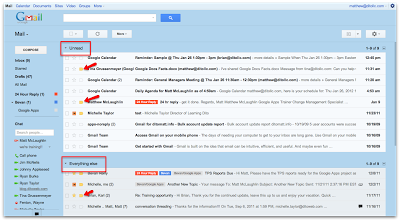 The ‘Unread First’ inbox view works similar to the ‘Important First’ view. Instead of placing the important messages first in a separate section, it places all the unread messages in a separate section. If you have chosen to continue showing the important markers (available with all inbox views), the important messages will be intermingled between both sections of the inbox. If you are a person that likes to keep his/her unread messages separate from all the other messages, this view is for you!