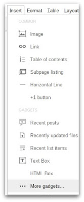 6. Next we need to insert an “iframe” gadget. Click on “Insert” and “More gadgets”. Search for “iframe”. Select an iframe gadget in the search results.