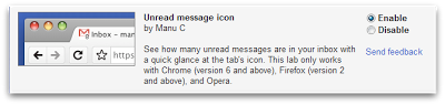 Once you have opened the Labs tab, scroll down through the available labs until you come across the ‘Unread Message Icon’ and then select the radio button next to ‘Enable.’