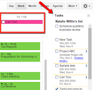Step 4) To view your Tasks and Reminders in Google Calendar, open Google Calendar, and click Tasks located on the left side under “My calendars.” Your tasks will open on the right. To sort by due date, click Actions > Sort by due date.