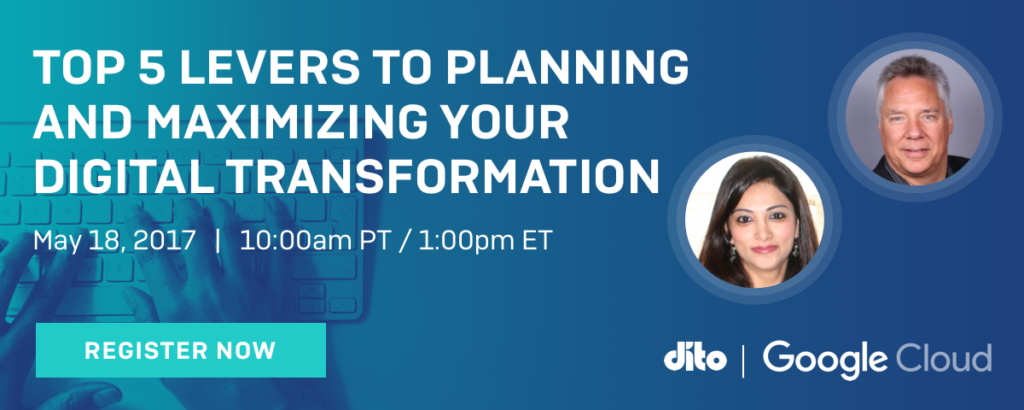 In this upcoming webinar, Dito’s CTO, Bill Floyd, and Google Cloud Enterprise Partner Manager Nidhi Seth, discuss what they are seeing across their enterprise customers and highlighting key ways in which organizations are leveraging cloud services and modern IT stacks.